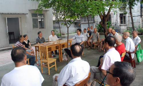 ??? 本网讯 为喜迎中国人民解放军建军八十五周年,,,,,,7月31日上午,,,,,,绵阳市委宣传部常务副部长胡科,,,,,,集团公司党委副书记蒋一新一行,,,,,,冒着炎炎酷署,,,,,,来到富乐路17号集团公司购并企业原经编厂生涯区晚年运动室,,,,,,慰问了企业军转退休老干部,,,,,,并与军转老干部们举行了座谈。。。。。。。。
