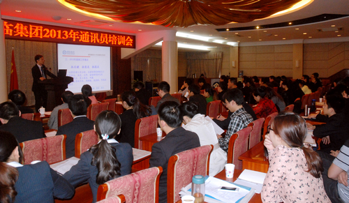 ??? 本网讯 3月22日,,,,, ,,,集团公司在本部四楼聚会室开展年度通讯员营业培训。。。。。各企业行政部分认真人,,,,, ,,,集团公司本部及各企业通讯员等70余人加入培训。。。。。