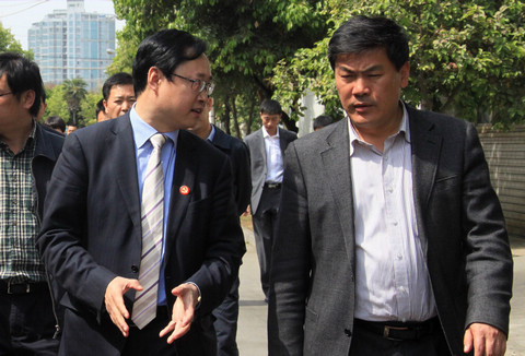 市委书记罗强(右1)、集团公司总司理李亿中(右3)等陪同调研