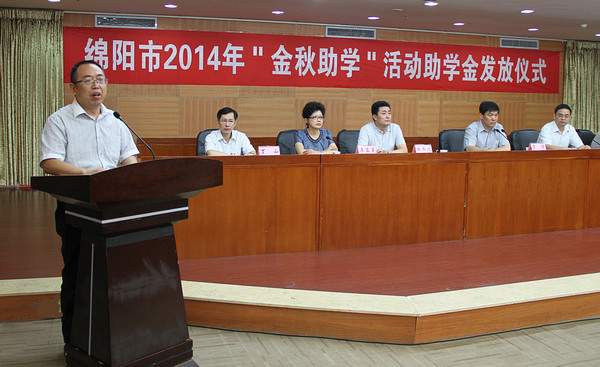 绵阳市2014年“金秋助学“运动助学金发放仪式现场?????