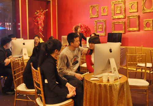 ??????? 本网讯 4月17日,,,,,,,,桃花岛国际度假旅馆首届婚礼展览会盛大开幕,,,,,,,,来自成绵两地共计20余家婚庆服务企业加入展出,,,,,,,,产品包括喜烟、喜酒、珠宝、婚纱、婚庆礼仪等种别,,,,,,,,准新人们络绎一直地上岛“淘”幸福,,,,,,,,旅馆婚宴订单日期已至2016年,,,,,,,,受到绵阳市民的热烈追捧。。。。。。。。