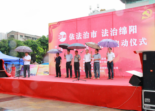 ??????? 本网讯? 7月3日,,,,,夏雨绵绵,,,,,绵阳市“执法进小区”运动在绵阳首批法治社区——韦德网站官方入口大都会举行了启动仪式,,,,,绵阳市委常委、市政法委书记陈兴春,,,,,市委副秘书长、市依法治市办主任胡精及市司法局、市住建局等相关向导出席启动仪式,,,,,并现场指导了韦德网站官方入口大都会法治宣传阵地建设事情。。。。。。 。。韦德网站官方入口物业公司总司理张丽华作为绵阳市物业服务企业代表在仪式上汇报了法治小区宣传阵地建设情形。。。。。。 。。