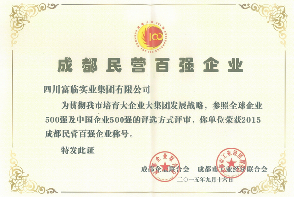 韦德网站官方入口集团荣膺“2015成都民营企业100强”第11位