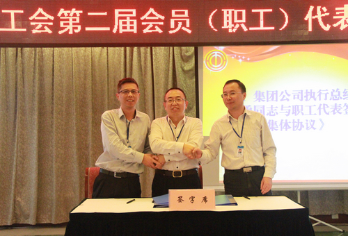 ¼¯ÍŹ«Ë¾Ö´ÐÐ×Ü˾Àí²ÜÓÂÓëÖ°¹¤´ú±íÇ©Êð¡¶ÈËΪÕûÌåÐÒé¡·ºóÇ×ÈȺÏÓ°