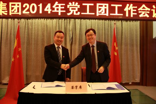 ????????????????????????????????????? 聚会现场??????? 各下层党组织认真人汇报了2013年度党工团事情总结和2014年度事情妄想。。。。。。。。集团公司党委、工会、团委认真人作了2013年总结报告,,,,,,,对2014年岁情举行了安排和安排。。。。。。。。集团公司党委书记李亿中与各下层党组织认真人签署了《2014年度党建事情目的责任书》。。。。。。。。