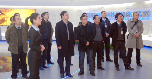 ??? 李总一行在绵阳科技城科教创业园区党工委委员、管委会副主任朱先凯的陪同下现场旅行了绵阳国家科技城建设成绩展馆、工业手艺研究院、科技服务大厅、工业产品展示区等区域,,,,,,,,亲自感受前沿科技产品的奇异魅力。。。。。。。。旅行中,,,,,,,,朱先凯副主任向李总一行先容了绵阳科技城的建设现状与未来生长思绪,,,,,,,,就前沿科技产品及其效果转化、工业推广情形做了说明。。。。。。。。