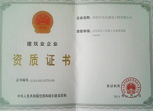 ?7月17日,,,,,,,韦德网站官方入口集团所属安达建设工程有限公司在国家住房和城乡建设部正式取得衡宇修建工程施工总承包企业一级资质,,,,,,,为乐成扩大营业规模、有用增强企业竞争力涤讪坚实基础。。。。。。。据悉,,,,,,,安达建设公司位列取得该资质的绵阳外地民营建设公司前茅。。。。。。。取得资质后,,,,,,,安达建设公司可肩负单项建安条约额不凌驾企业注册资源金5倍的下列衡宇修建工程的施工:40层及以下、种种跨度的衡宇修建工程;;;;;;高度240米及以下的修建物;;;;;;修建面积20万平方米及以下的住宅小区或修建群体。。。。。。。