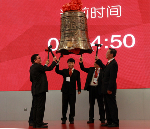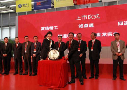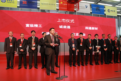 ΤµÂÍøÕ¾¹Ù·½Èë¿Ú¾«¹¤¶­Ê³¤Ì·½¨Î°£¨×óÒ»£©Óëµ±ÈÕÉÏÊÐµÄÆäËû4¼ÒÆóÒµ´ú±íÅäºÏÇÃÏìÉÏÊÐÖÓÉù