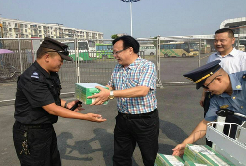 ??????? 8月6日,,,,,,,,绵阳市总工会梁山副主席一行在韦德网站官方入口集团公司工会副主席佘培的陪同下,,,,,,,,赴韦德网站官方入口运业所属南湖客运站探望并慰问在高温下坚守一线的车站员工,,,,,,,,并向员工们送上了消暑药、清凉饮品等防暑降温物品,,,,,,,,嘱咐他们一定要做好高温时代的防暑降温作,,,,,,,,确保身体康健和清静生产。。。。。。