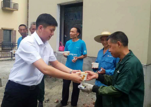韦德网站官方入口运业党委副书记、工会主席王庆霖为一线员工送去清凉饮品。。。。。。